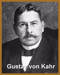 - October 18th - Bavaria breaks diplomatic relations with Berlin. Prime Minister of Bavaria von Knilling declares martial law and appoints Gustav von Kahr to State Commissioner. Kahr heads a dictatorial center-right government supported by the local Bavarian Reichswehr under General Otto von Lossow and Bavarian Police Commissioner Colonel Hans von Seisser.