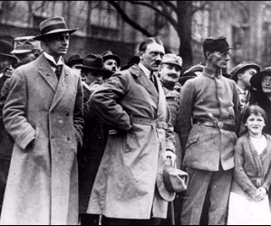 - November 8th - 9th - The infamous “Beer Hall Putsch” occurs in Munich. On the evening of Nov. 8th,1923 Adolf Hitler surrounded the Bürgbräu Keller in Munich with 600 of his Nazi storm troopers and effectively captured most of the Bavarian government. With lies and threats he managed to form an uneasy alliance with Commissioner Kahr and the local politicians. Late the next morning, in an attempt to march to General von Lossow’s Reichswehr headquarters to convince the army to join them, a rabble of 3,000 armed supporters led by Hitler, WWI hero General Ludendorf, and others were fired upon at a police barricade at the Odeonsplatz before reaching Lossow’s offices. 14 of Hitler’s followers and 3 Police were killed in the exchange of gunfire. For his part in this minor, but bloody, revolution Hitler only received the minimum sentence of 5 years... and served only 8 1/2 months; and, contrary to the law, was not deported ( he was an Austrian ) as an undesirable foreigner.