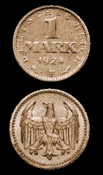 - November 15th - The Rentenbank issues the new Rentenmark with a value equivalent to 1 pre-war Gold mark or 1 Billion ( 1,000,000,000,000 ) paper Reichsmarks ( which is achieved on Nov 20th ). The Reichsbank is ordered to stop discounting Treasury bills and the printing of paper marks.