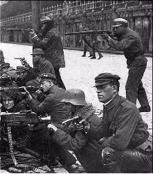 - April 7th - May 2nd - Communist "Räterrepublik" uprising in Munich is suppressed by Freikorps and Reichswehr troops sent by the SPD. Hard-line Marxists kill prominent citizen hostages and right-wing "Thule" Society members in a last desperate act. In retaliation, Freikorps troops massacre 100's including innocent civilians. The Marxist/Spartakist leaders are imprisoned or executed.